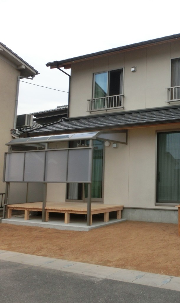 土間コンクリートとアルミテラス+目隠しパネル