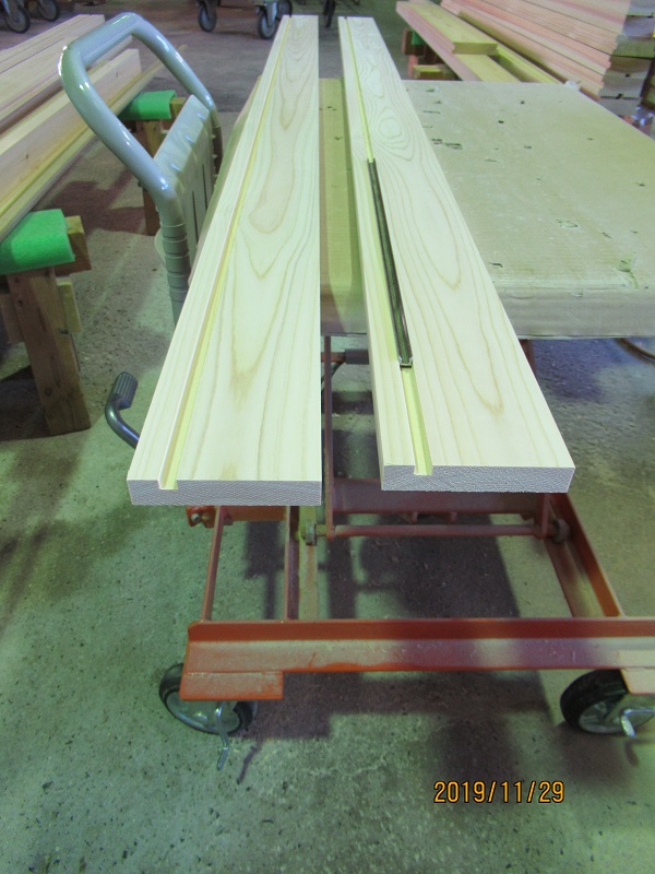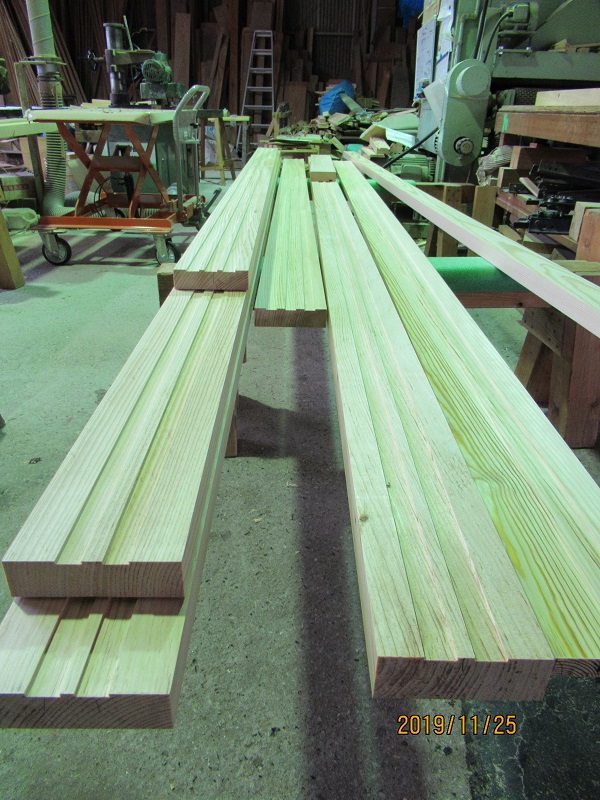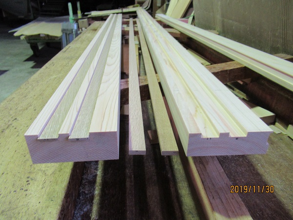 和室など、障子やふすまが入る場合は、レールを入れないので、少し堅い松などを使用し、浅い溝をつきます。