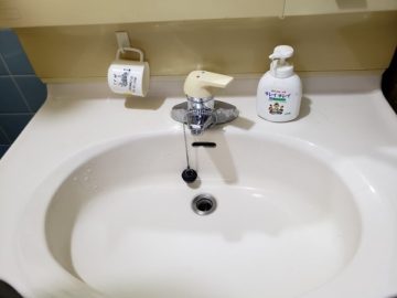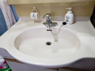洗面台の水栓金具・・・下に下げると水が出て、上に上げると水が止まる(震災前)