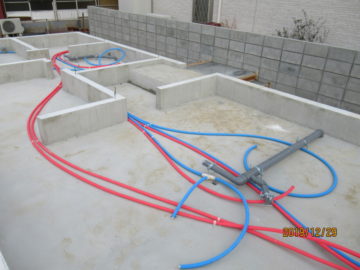 給水・給湯・排水の床下配管完了。