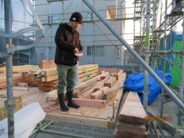 当日は、荒野地と呼ばれる屋根板貼りまでが完了しました。
