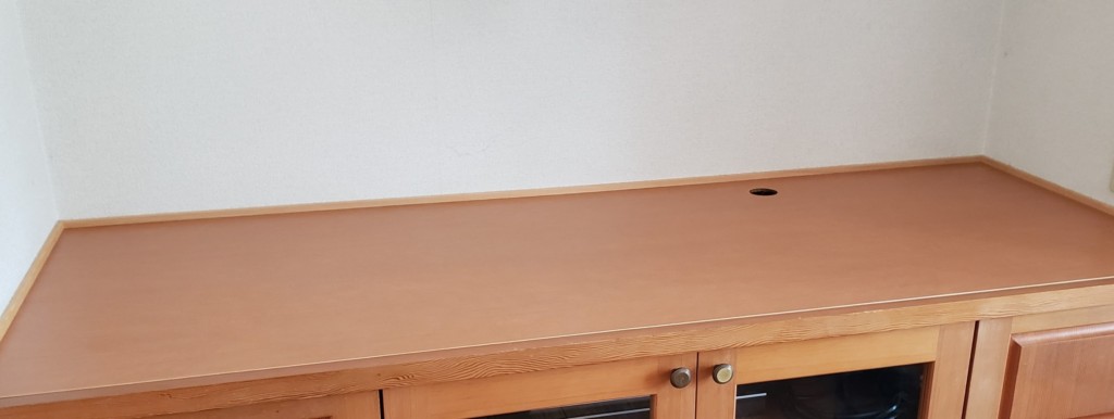 天板へメラミン板を貼るのが一番綺麗に仕上がるだろうということで施工させて頂きました。