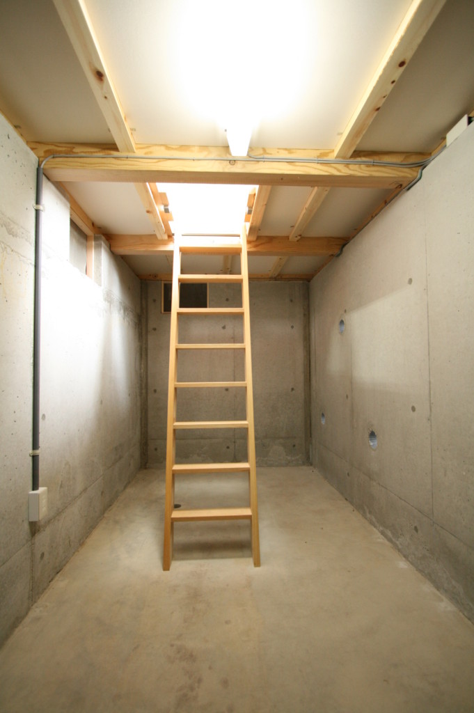 斜面をそのまま利用して半地下の収納庫を。