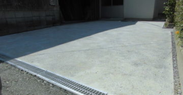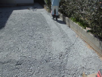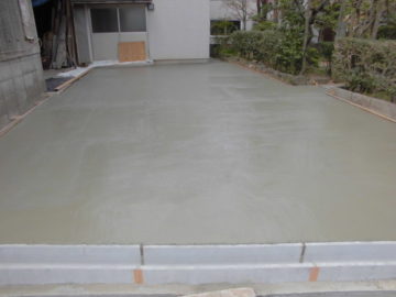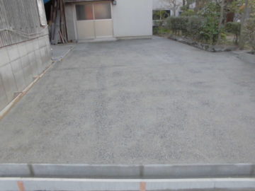 この度、自社倉庫北側をコンクリート舗装にしました。