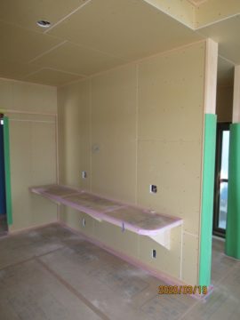 カウンターを取り付けて、傷を付けない様に厳重に養生をしました。