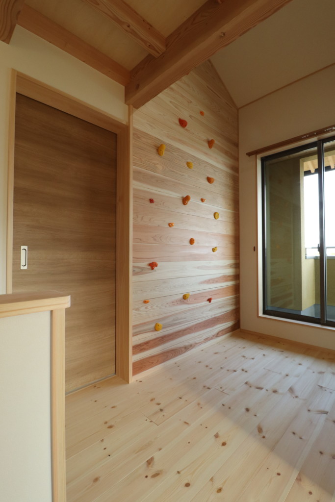 クライミングホールドの取り付けは、ご家族皆様の共同作業で完了しました。