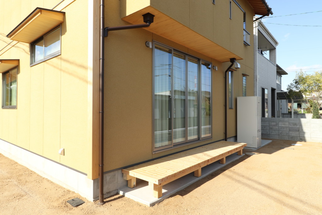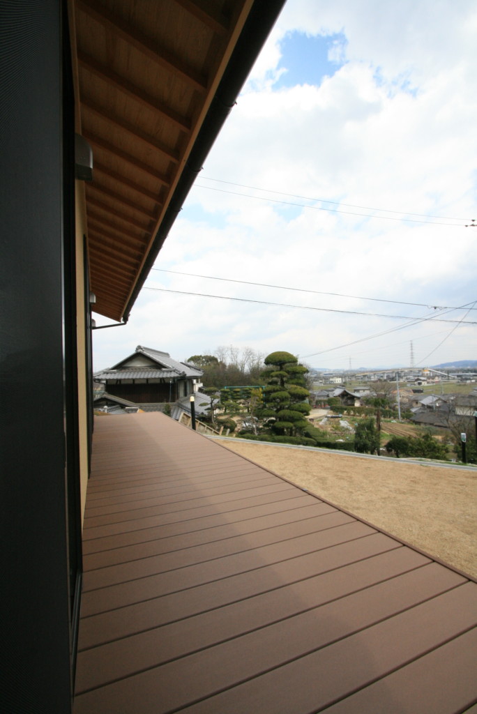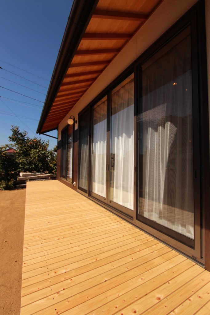 縁側の代わりに濡れ縁式での広いデッキも人気のある形式です。