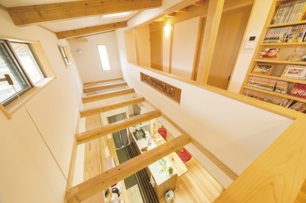 増改築工事により、中二階の屋根裏を吹き抜けに。