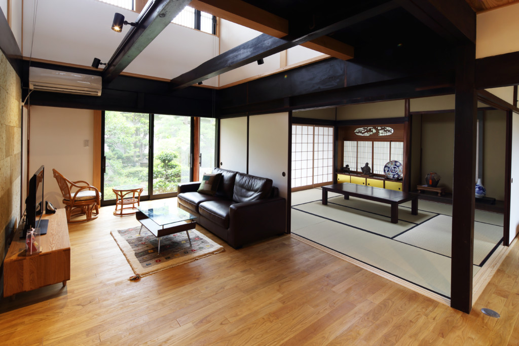古民家再生工事により、二階の床梁を化粧に表して、