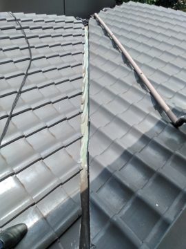 ↓ステンレス製の谷樋に交換工事中 ↓完成