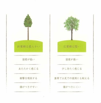 あたたかみの感じ方は、木材の堅さによっても異なります。