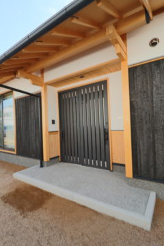外部仕上げは、焼き板貼り・漆喰塗・化粧腕庇・板庇・化粧梁・化粧束と、