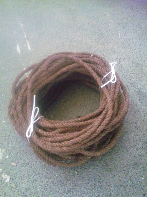 倉庫を片付けていると、ぐちゃぐちゃに絡まったシュロ縄が出てきたので、きれいにまとめました。