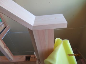 大工さんが内部を造作中で、階段の手すりを取り付けられているところでした。