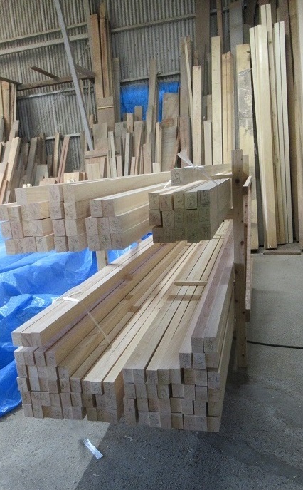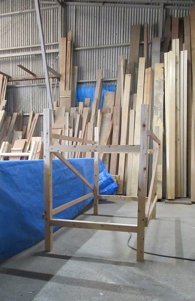 今日は加工した垂木(屋根を支える材料)をストックしておくための簡単な棚を作りました。