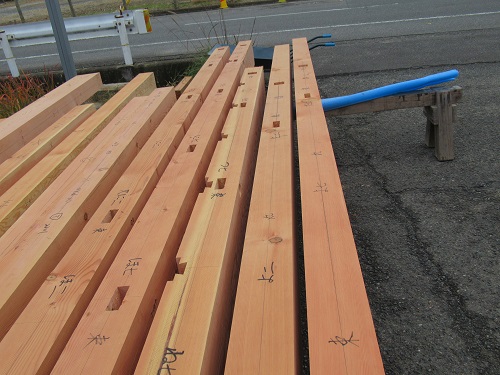 現在、大工さんが木材の手刻み(てきざみ)中です