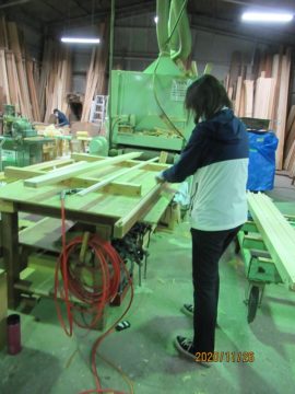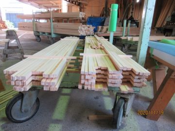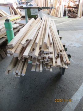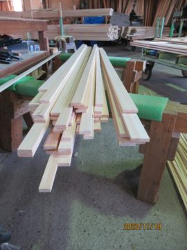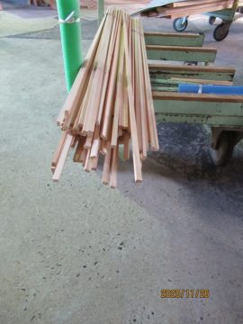 森本工務店では、ひのきと杉の端材を10㎜×15㎜×2mに加工しています。