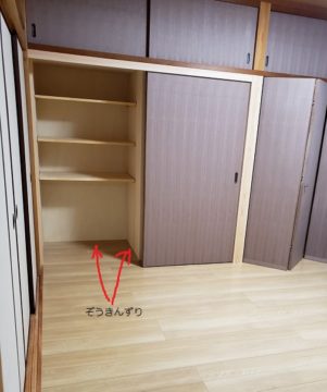ぞうきんずりは押し入れの中などの壁と床板や棚板が接する部分に取り付ける細長い材料です。