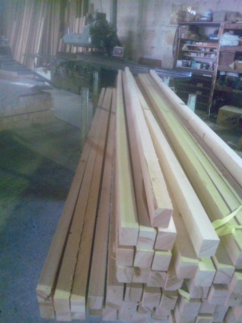 ちょうど、桧のタルキとサッシの額縁を加工していました。