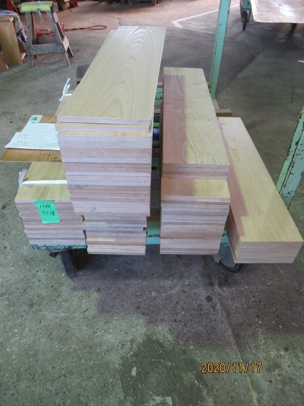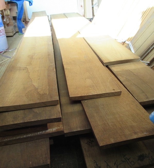 板の材料には倉庫で長い間乾燥させてあったクリを使用しています。