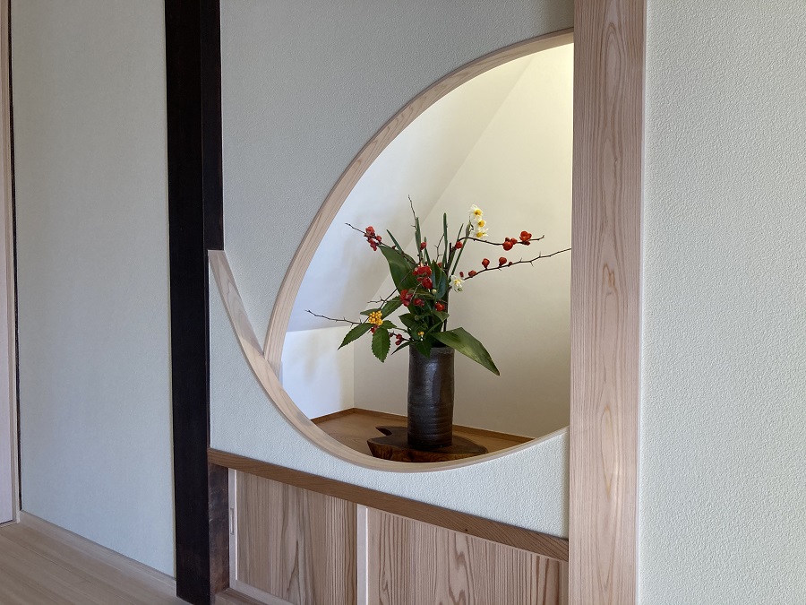 年末にお引き渡しをさせていただいたお宅の玄関飾り棚の写真です。