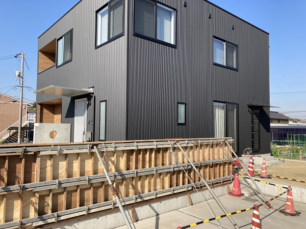 塀は、コンクリート打ち放し+(プラス)たたき仕上げです。