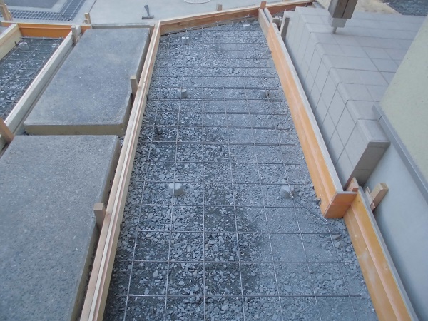 既存の洗い出しコンクリートとの間の幅が狭いので、強度の事を考えて、途中の間仕切りはなくしました。