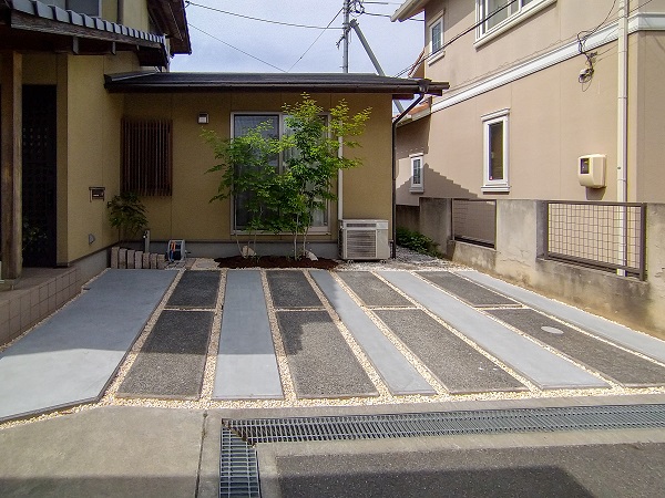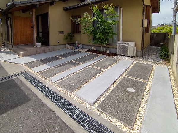 前回、玄関横の駐車場スペースを4列の洗い出しコンクリートにしていたのですが、