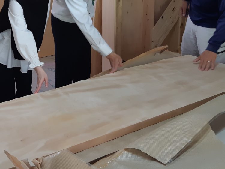 この日は、監督さん自身が探してきたファミリーカウンターに使われる朴(ホオ)の1枚板も見ていただき、