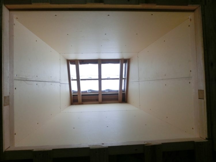 更に、天井に開いている四角い窓からは、天窓からの光がリビングを明るく照らしています。