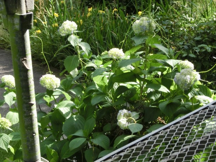 足場の傍には、少し早い梅雨の訪れで紫陽花が潤っていました。