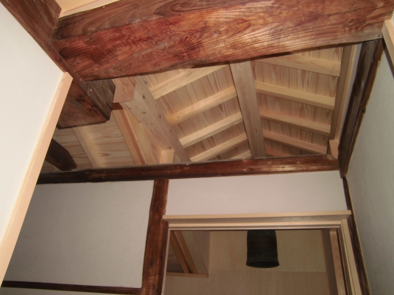 家一軒まるごと、古い桁の上に束を何本もいれて新しい桁が乗っているのです。思いをはせていると、後から来た監督さんが 「この桁、一番上からつながっとるんじゃから」と言われて、何となくじーーんとしました。