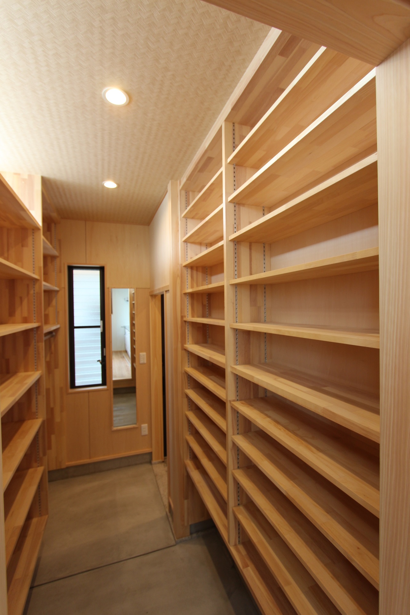 壁の両面に・L型に・天井まで等々、収納したい物により、間仕切りを工夫して、完全オーダーでの自由自在の設計が楽しめます。