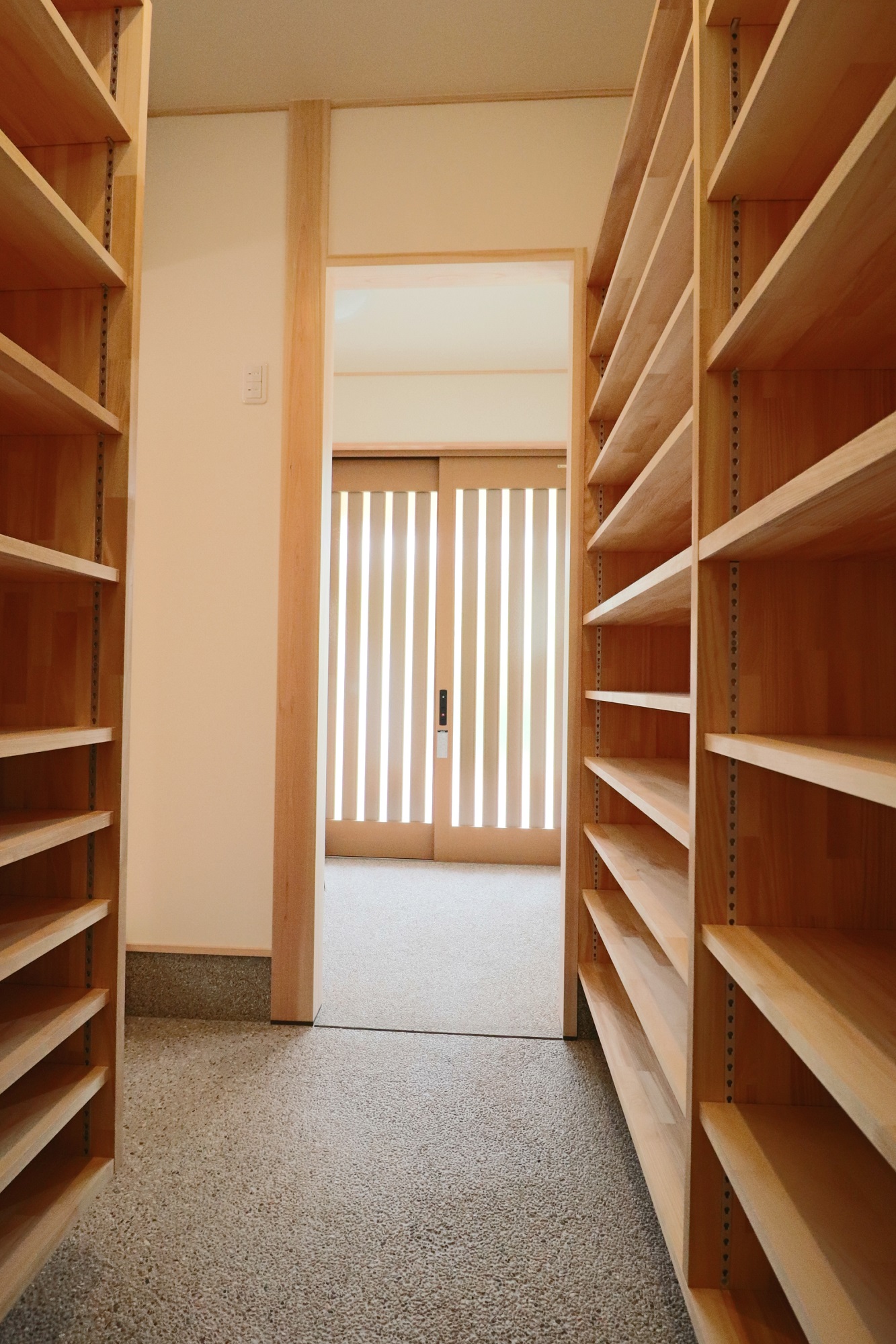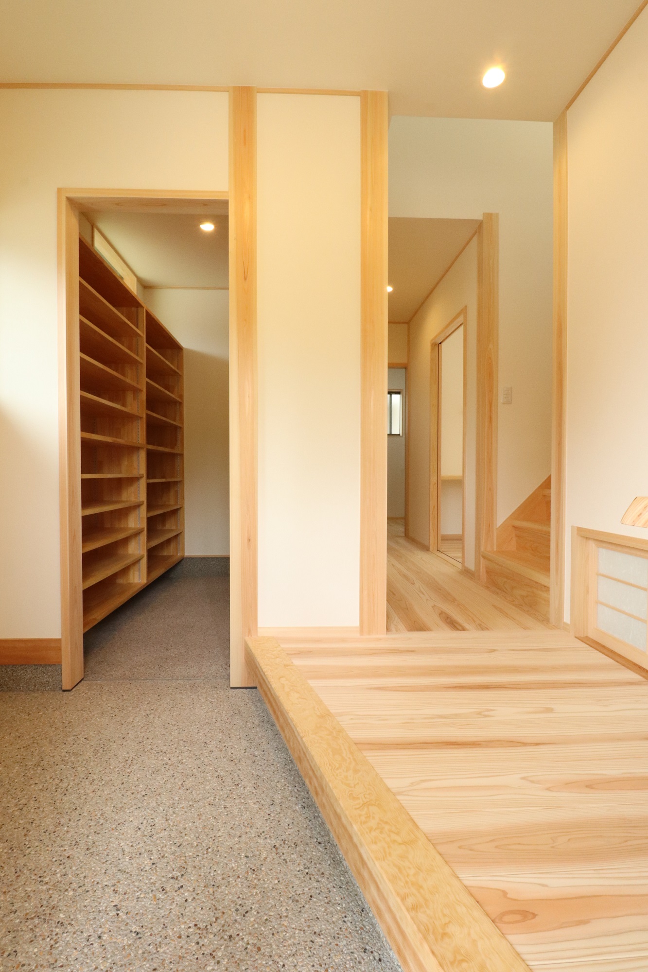 家族は、玄関から出入りしないように下足収納兼用での収納室をと、設計の早い段階でご希望されるお客様が増えています。