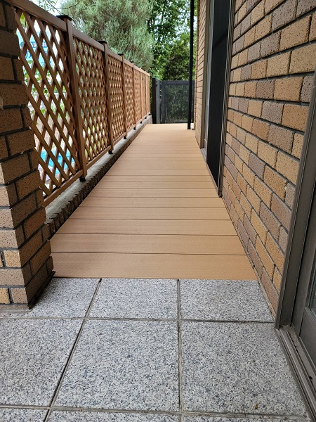 敷地に合わせていろんな形で設置できますし、スロープ、ステップ(階段)、多段デッキなど、