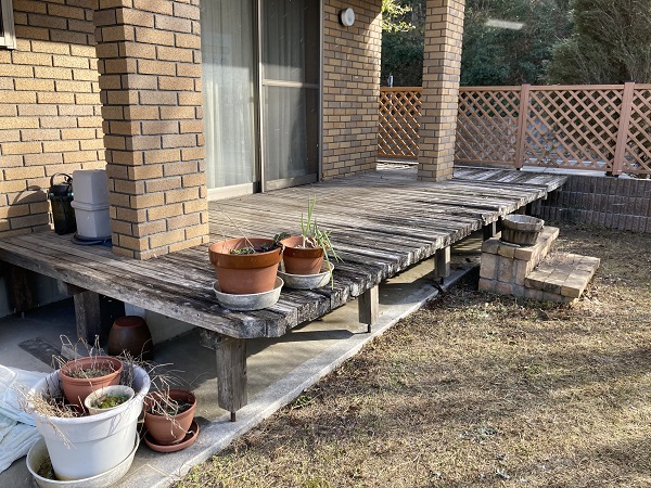 築24年、ヒノキ材のウッドデッキもよく頑張りましたが、