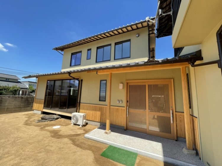 広かった玄関も、二世帯用の別々の入り口を取り付け、