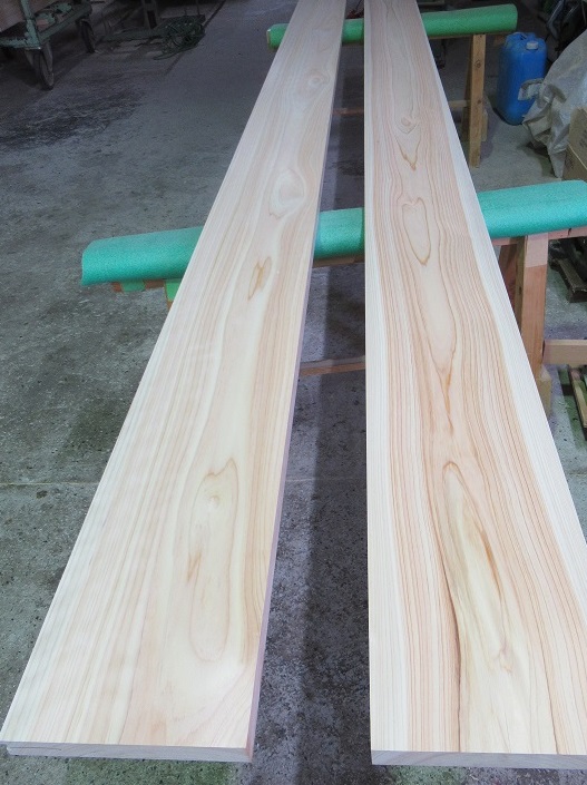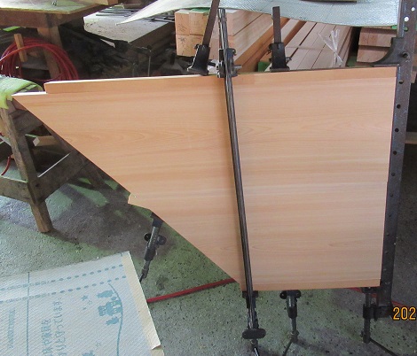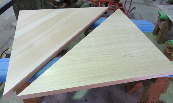 まわり部分の段板は広い幅が必要なので、2,3枚の板を貼り合わせて作っています。