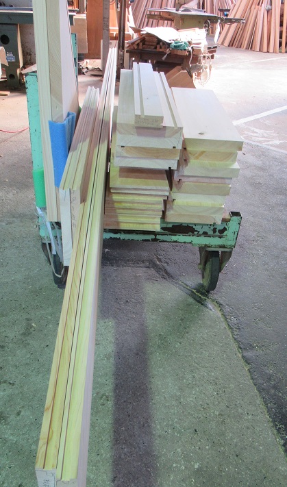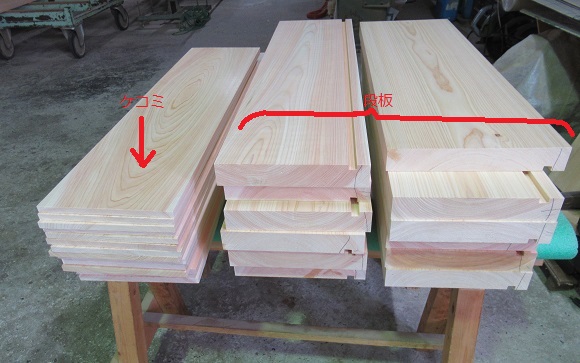 加工場では、段板にけこみが入る溝をつき、側板に壁地がくる溝をついて仕上げるまでをしています。