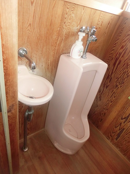 (汲取り便所の時は小便器と大便器に分かれていたのでドアが2ヶ所あります。)