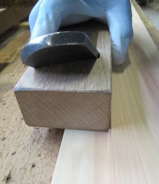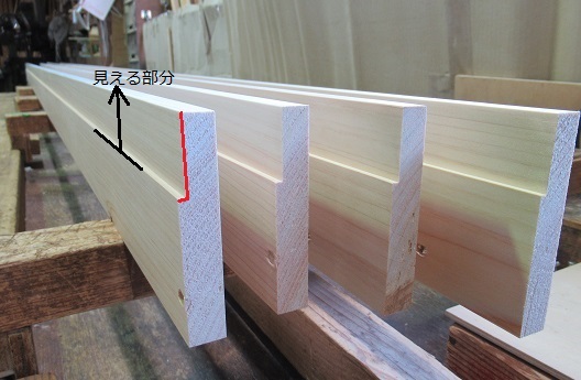 寸法に加工した後、しゃくりを入れて仕上げるのですが、機械で仕上げれない赤い線で示した部分は、きわガンナという隅まで削れるカンナを使って、手で仕上げています。