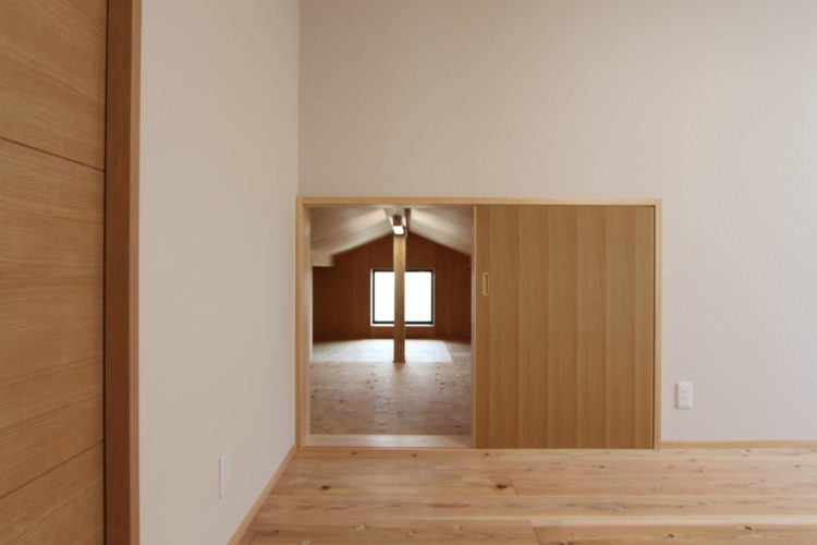 二階ホール又、個室に入り口を取り付けて、一階の屋根裏を利用。