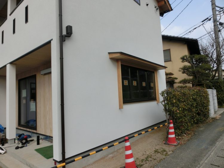 明かりを採り込みながら目隠しにもなり、外観のアクセントにもなる木製の縦格子。出来上がりが楽しみです♪