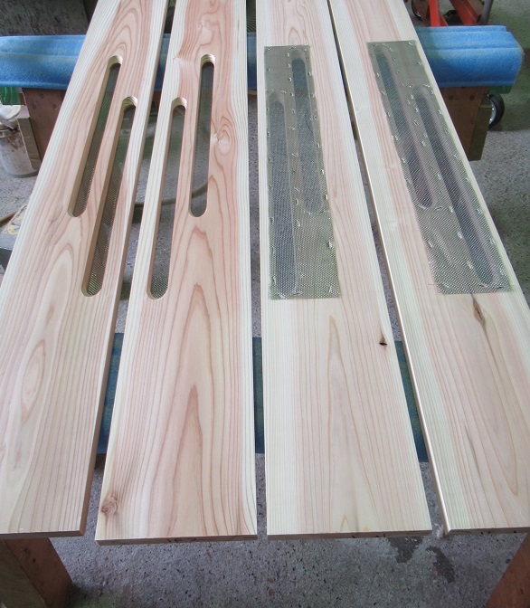 手順としては、まず棟木と母屋の大きさ、間隔、勾配に合わせて、バランスよく換気の穴をあけます。