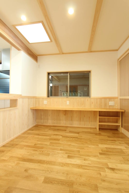 北側になったキッチン部に照明BOX兼用で。昼も夜も明るく。