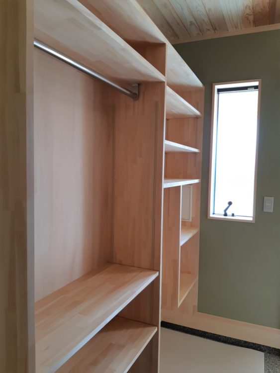 玄関収納は、置くものをお聞きしながら仕切りスペースの幅や高さを一つ一つ決めました。