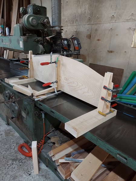 また、丸めんをとって柔らかい感じを出し、表からのビス、釘打ちでは趣きが無いのでボンドのみの接着です。