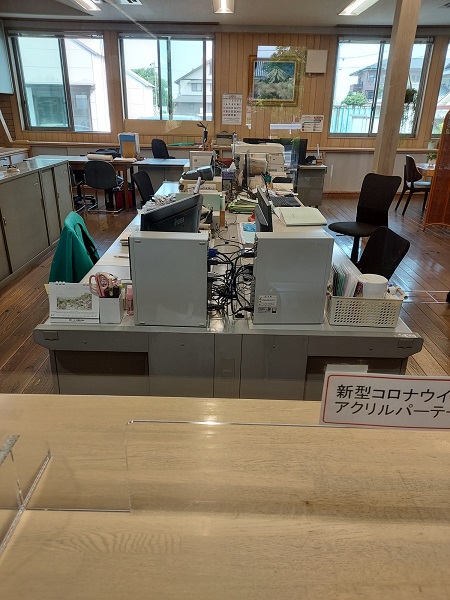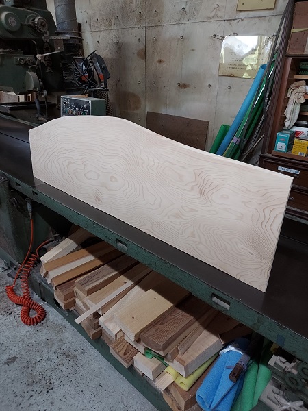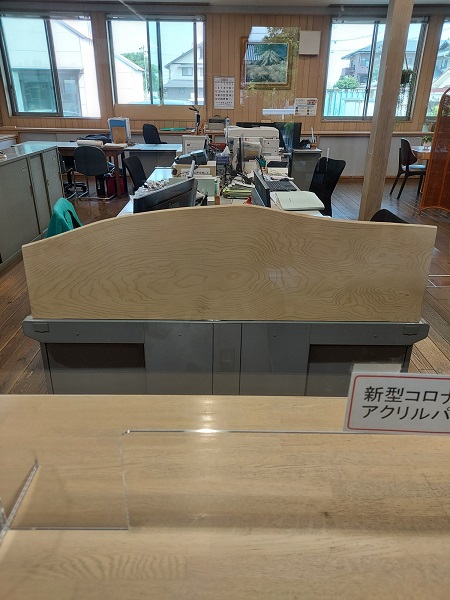 との総務課からの依頼で、カウンターの後ろに松の板で衝立を作成しました。