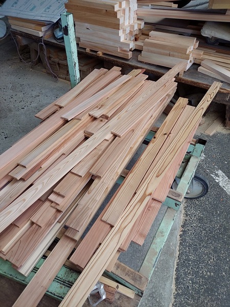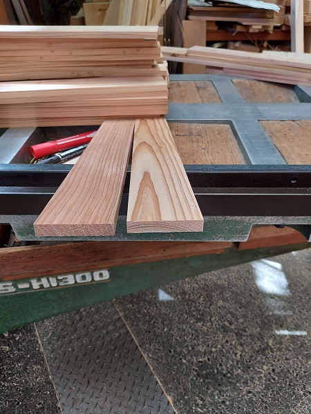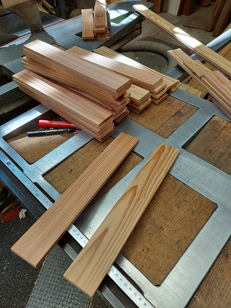 8月20日(土)の森本工務店、木の香まつりに向けて、キット材の加工依頼がきたので、杉の板を加工、カットしています。