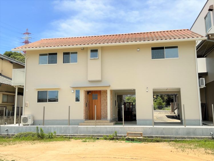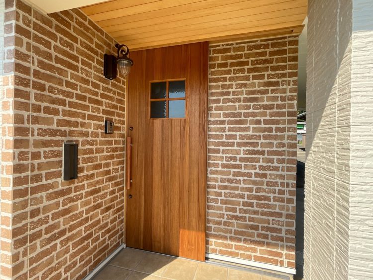 焼きむらのある洋瓦や木製の玄関ドアが映えるナチュラルな外観です。